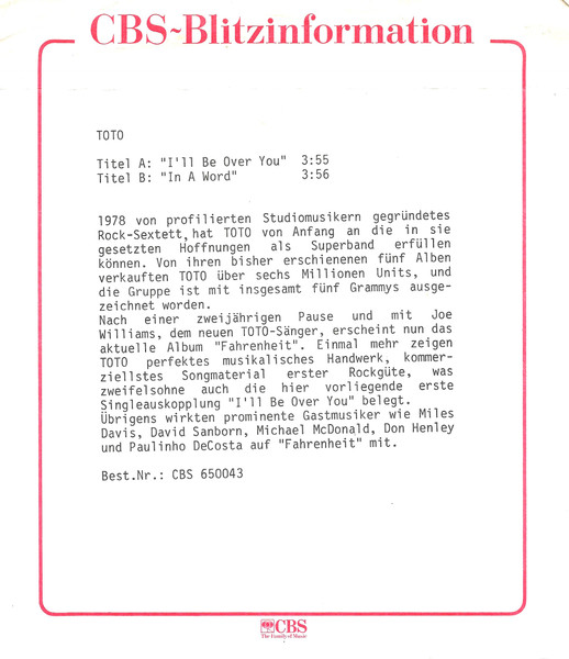 Label: CBS - Cat#: CBS 650043 7