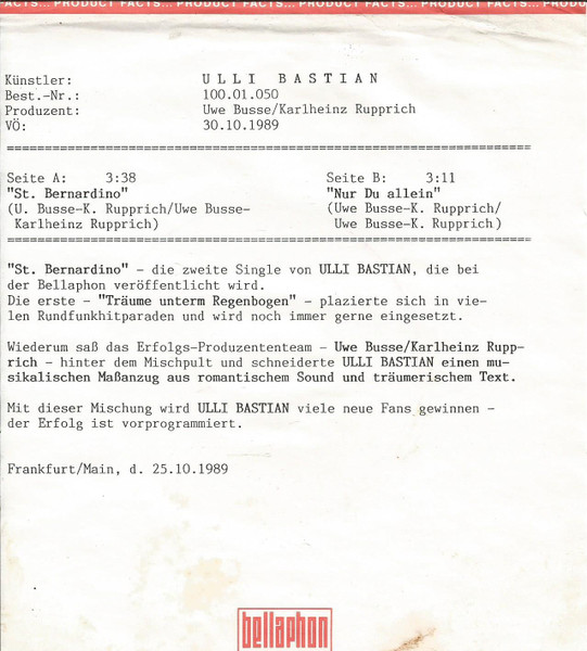 Vinyl / Ulli Bastian - St. Bernardino