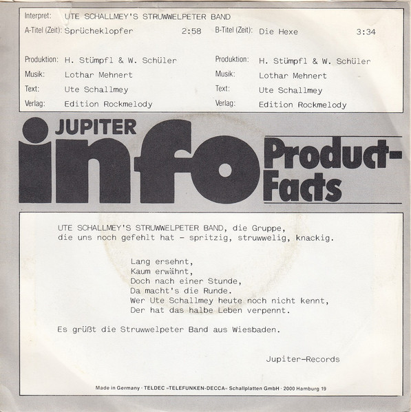 Vinyl / Ute Schallmey's Struwwelpeter Band - Der Sprücheklopfer / Die Hexe