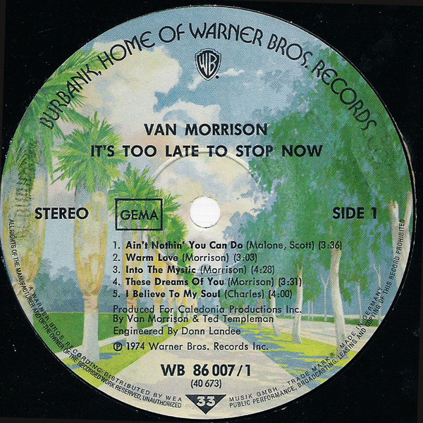 Vinyl / Van Morrison - It's Too Late To Stop Now