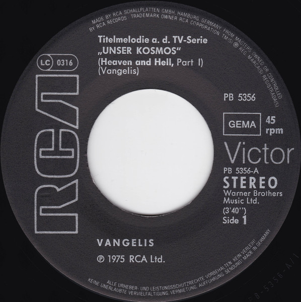 Vinyl / Vangelis - Titelmelodie Aus Der TV-Serie "Unser Kosmos"