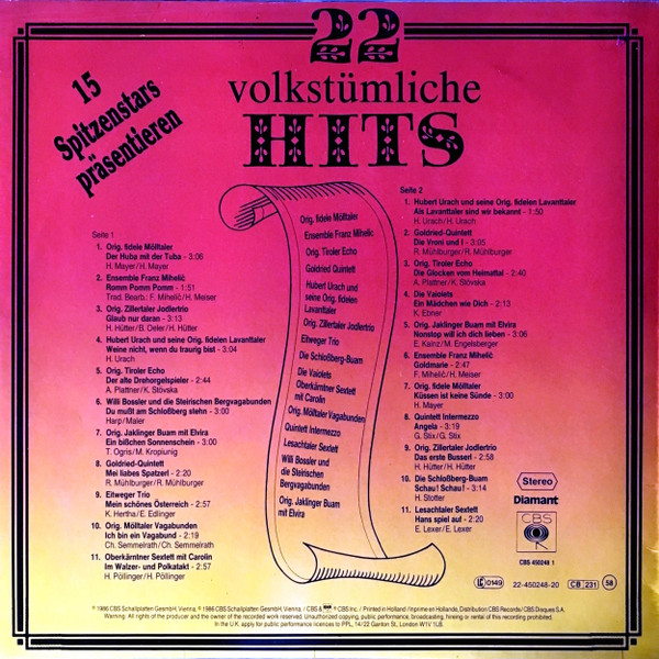 Vinyl / Various - 15 Spitzenstars Präsentieren : 22 Volkstümliche Hits
