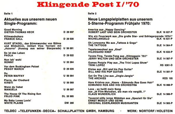 Vinyl / Various - Klingende Post I / 1970