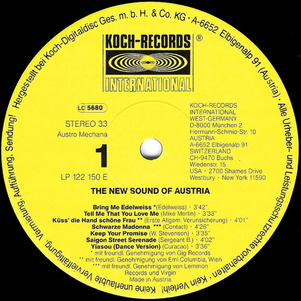 Label: Koch Records International - Cat#: 122 150 E