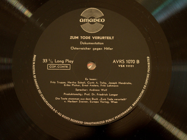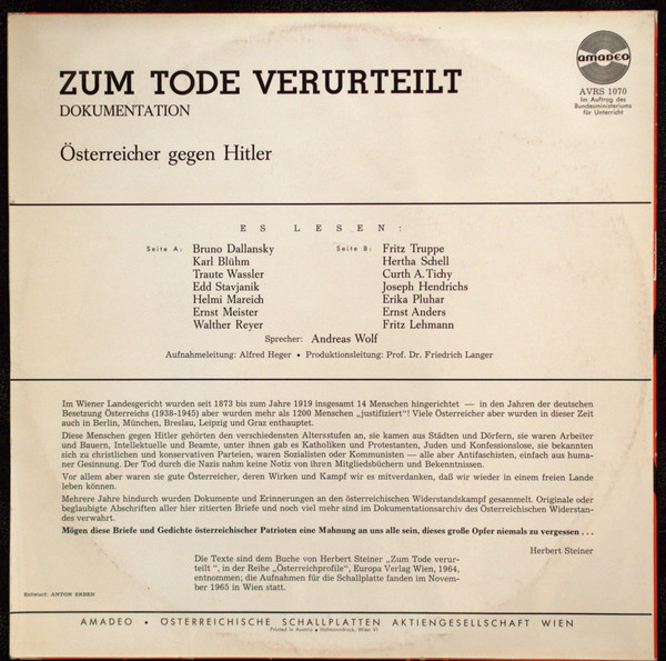 Vinyl / Various - Zum Tode Verurteilt - Österreicher Gegen Hitler