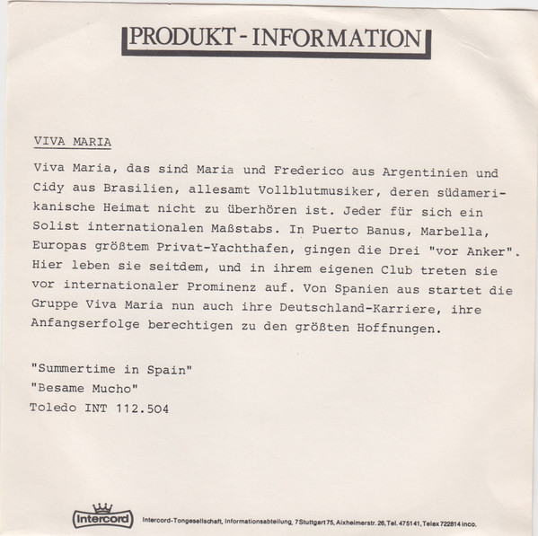 Vinyl / Viva Maria (2) - Besame Mucho