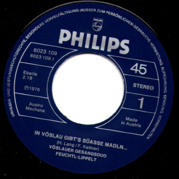 Vinyl / Vöslauer Gesangsduo Feuchtl - Lippelt - In Vösslau Gibt's Süasse Madln