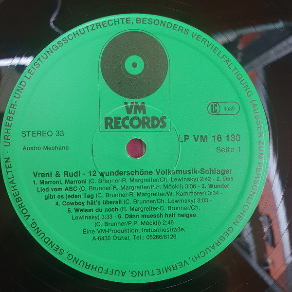 Vinyl / Vreni & Rudi - Marroni Marroni - 12 Wunderschöne Volksmusik-Schlager