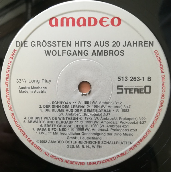 Vinyl / W. Ambros* - Die Grössten Hits Aus 20 Jahren