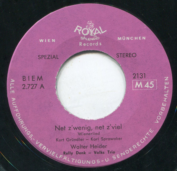 Vinyl / Walter Heider - Das Wiener Wahrzeichen / Net Z'wenig, Net Z'viel