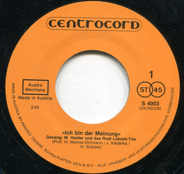 Vinyl / Walter Heider - Ich Bin Der Meinung