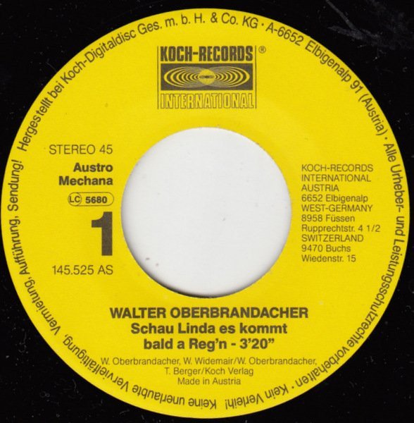 Vinyl / Walter Oberbrandacher - Schau Linda, Es Kommt Bald A Reg'n