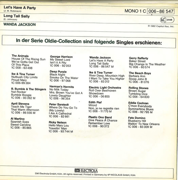 Vinyl / Wanda Jackson - Let's Have A Party / Long Tall Sally