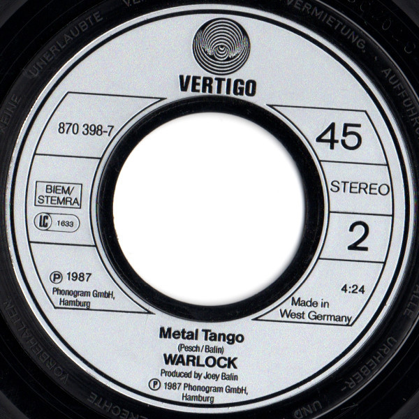 Label: Vertigo - Cat#: 870 398-7