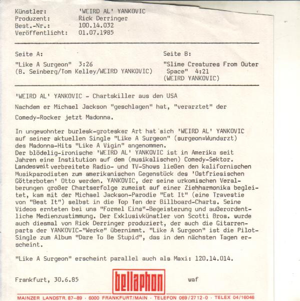 Vinyl / "Weird Al" Yankovic - Like A Surgeon