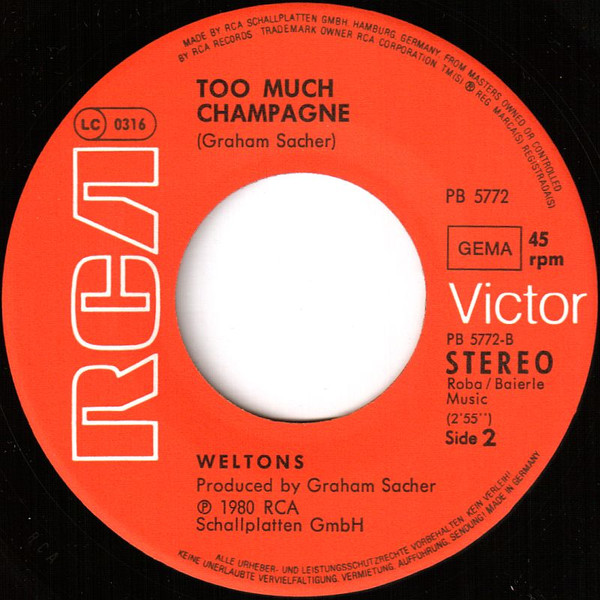 Vinyl / Weltons - Sweet Rock 'N' Roller / Too Much Champagne