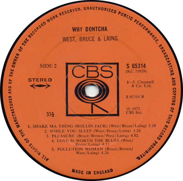 Vinyl / West, Bruce & Laing - Why Dontcha