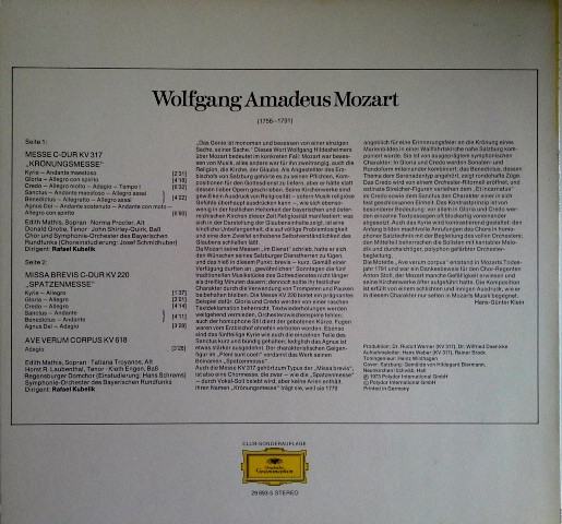 Vinyl / Wolfgang Amadeus Mozart - Krönungsmesse ● Missa Brevis ● Ave Verum