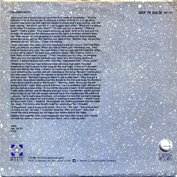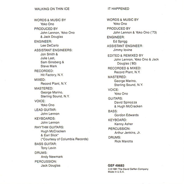 Vinyl / Yoko Ono - Walking On Thin Ice