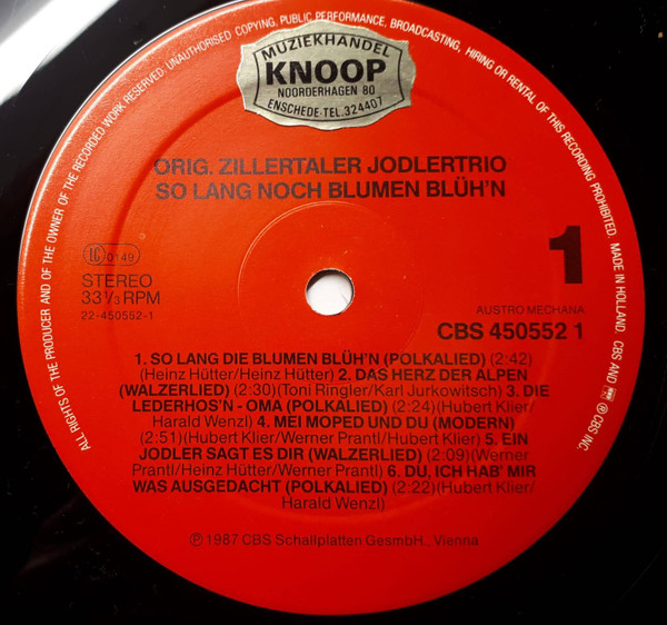 Vinyl / Zillertaler Jodlertrio - So Lang Noch Blumen Blüh'n