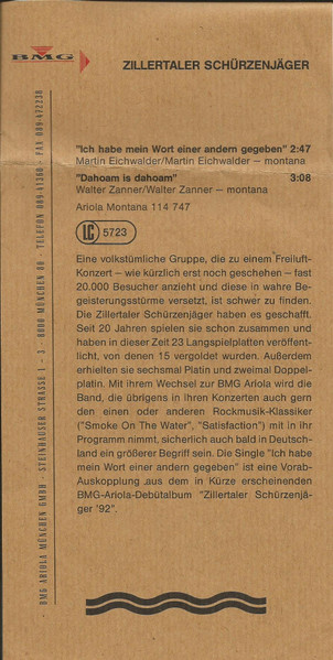 Vinyl / Zillertaler Schürzenjäger - Ich Habe Mein Wort Einer Andern Gegeben