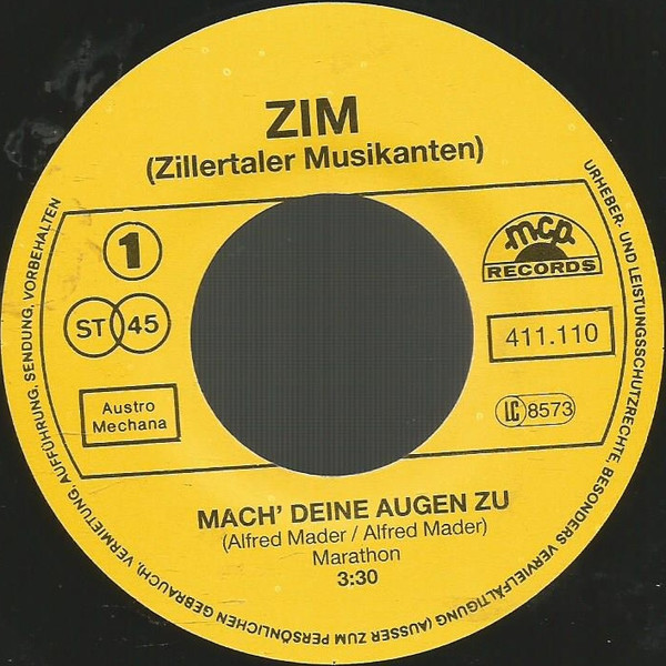 Vinyl / Zillertaler ZIM Musikanten* - Mach' Deine Augen Zu / Forsythien
